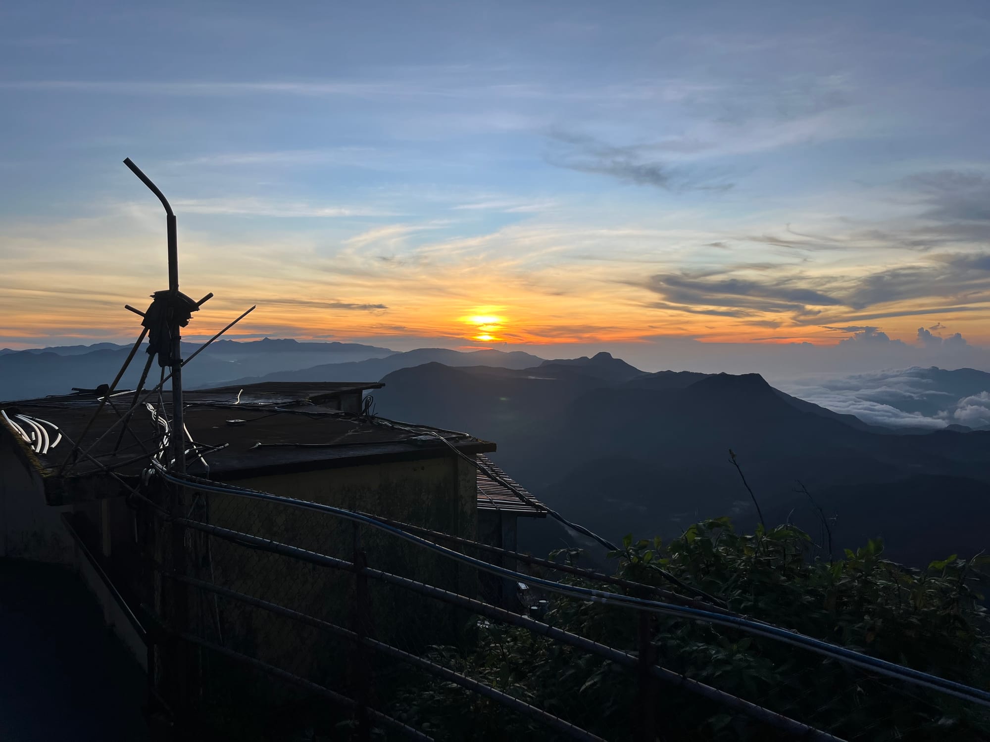 Huipulla oli kymmenittäin muita turisteja ja muutamia munkkeja kaapuineen odottamassa auringonnousua. Maisemat huipulta ovat hienot, mutta eivät täysin ainutlaatuiset. Emme myöskään päässeet näkemään pyhää jalanjälkea, koska huipulla oleva temppeli oli suljettu (jossa siis uskoin jalanjäljen olevan). Temppeli mahdollisesti auki vain pyhiinvaelluskautena?