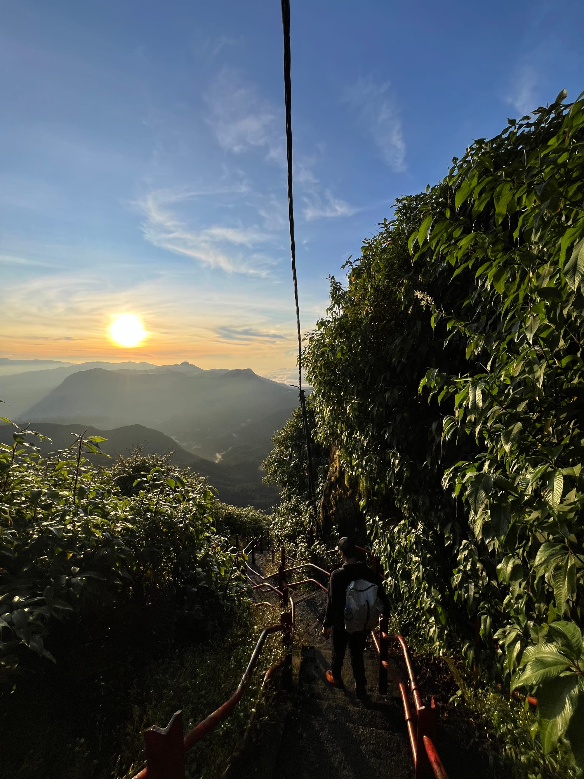 Paluumatkalla, auringonpaisteen valaistessa rappusia ja maisemia, näkymät ovat kuitenkin hienot. Sri Lankassa ei mainosteta erityisen paljon helppoja vaelluksia, ja Aataminhuipulle kiipeäminen, tai "porrastreeni" on ehdottomasti yksi maan yksinkertaisista mutta mieleenpainuvista haasteista.
