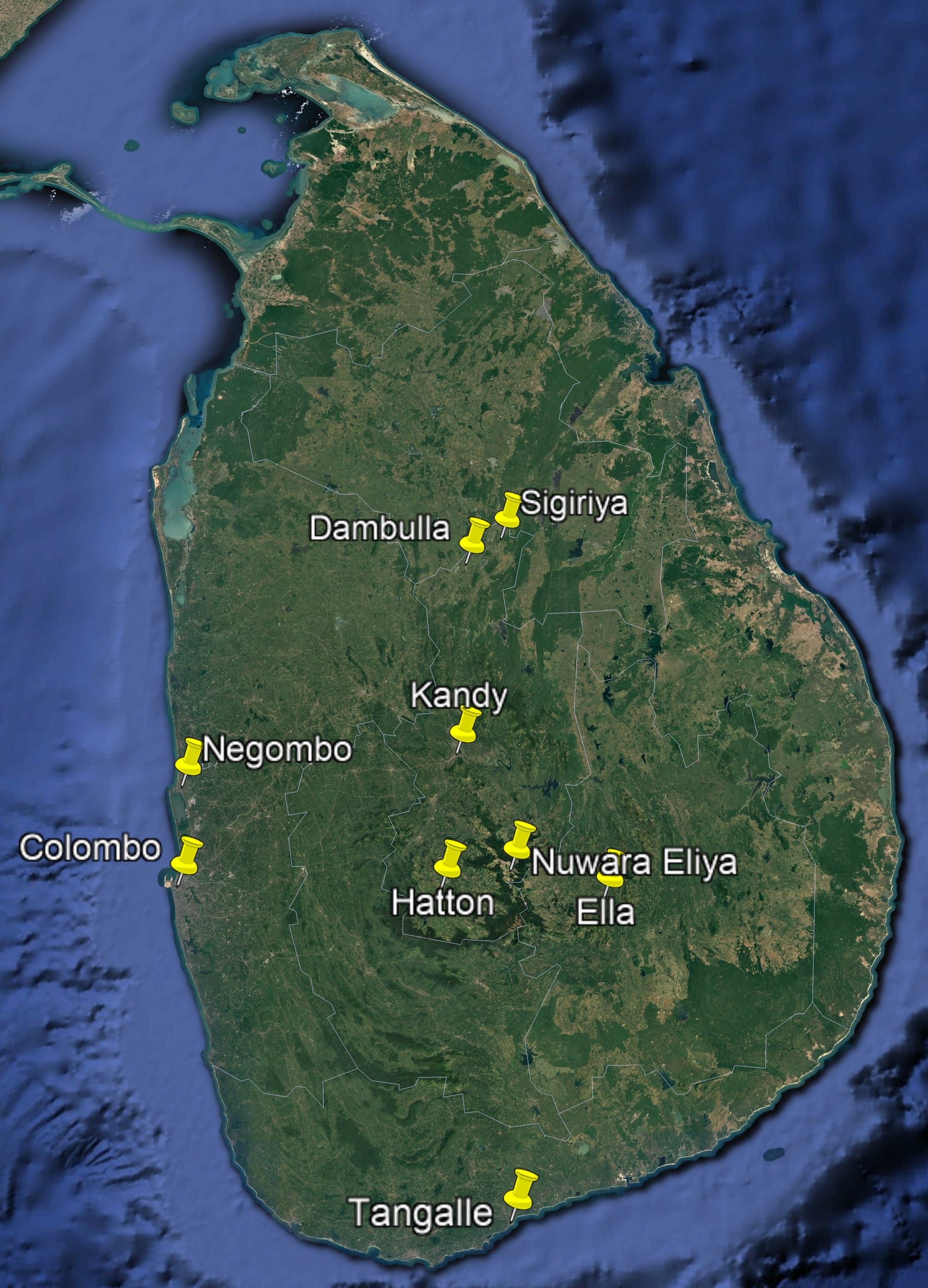 - Nuwara Eliya – Viehättävä vuoristokylä, joka tunnetaan kauniista maisemistaan, tee viljelyistä ja brittiläisestä kolonialismin aikaisista rakennuksistaan.